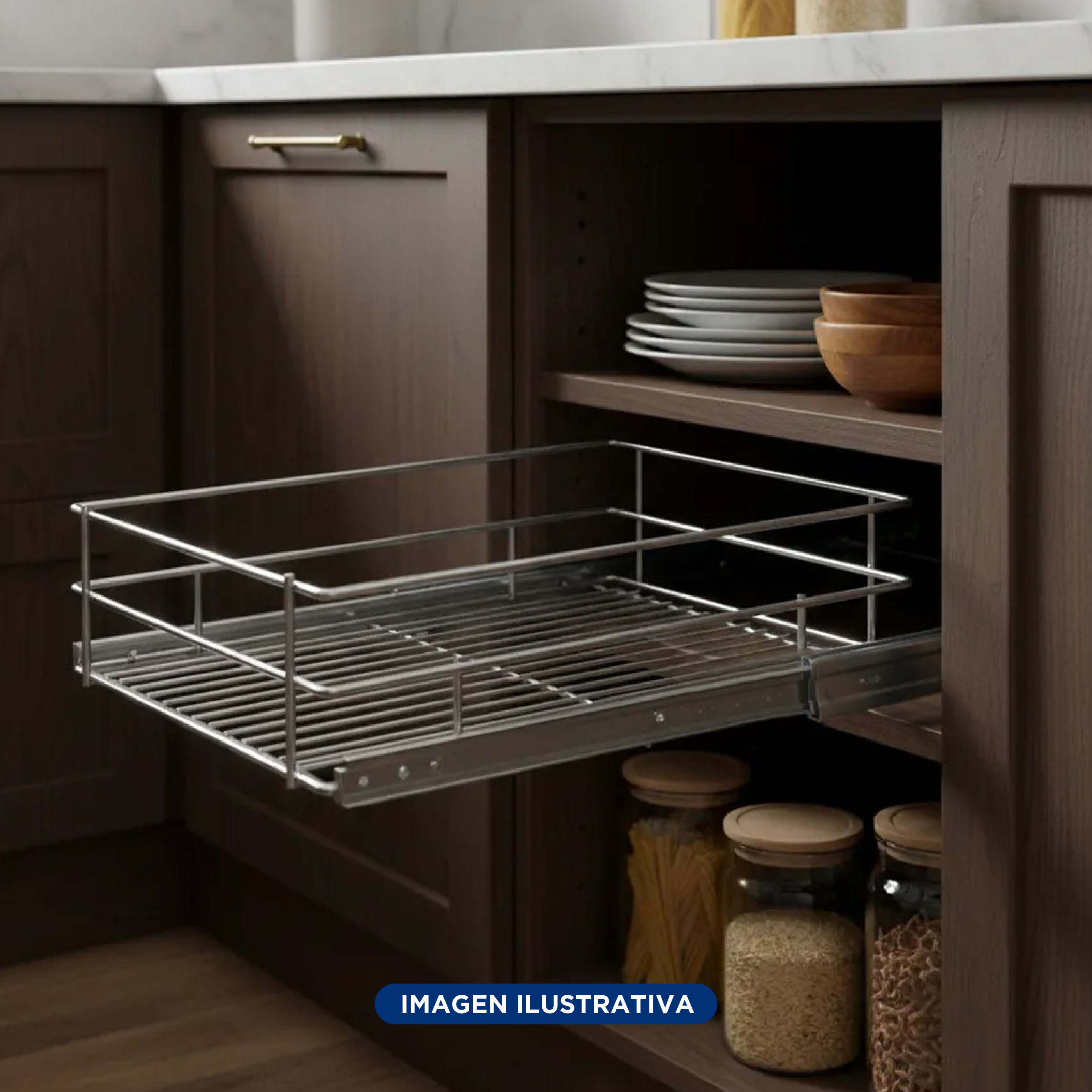 Canasto Extraible 1 Nivel Telescopicas Frente 150mm Cromo