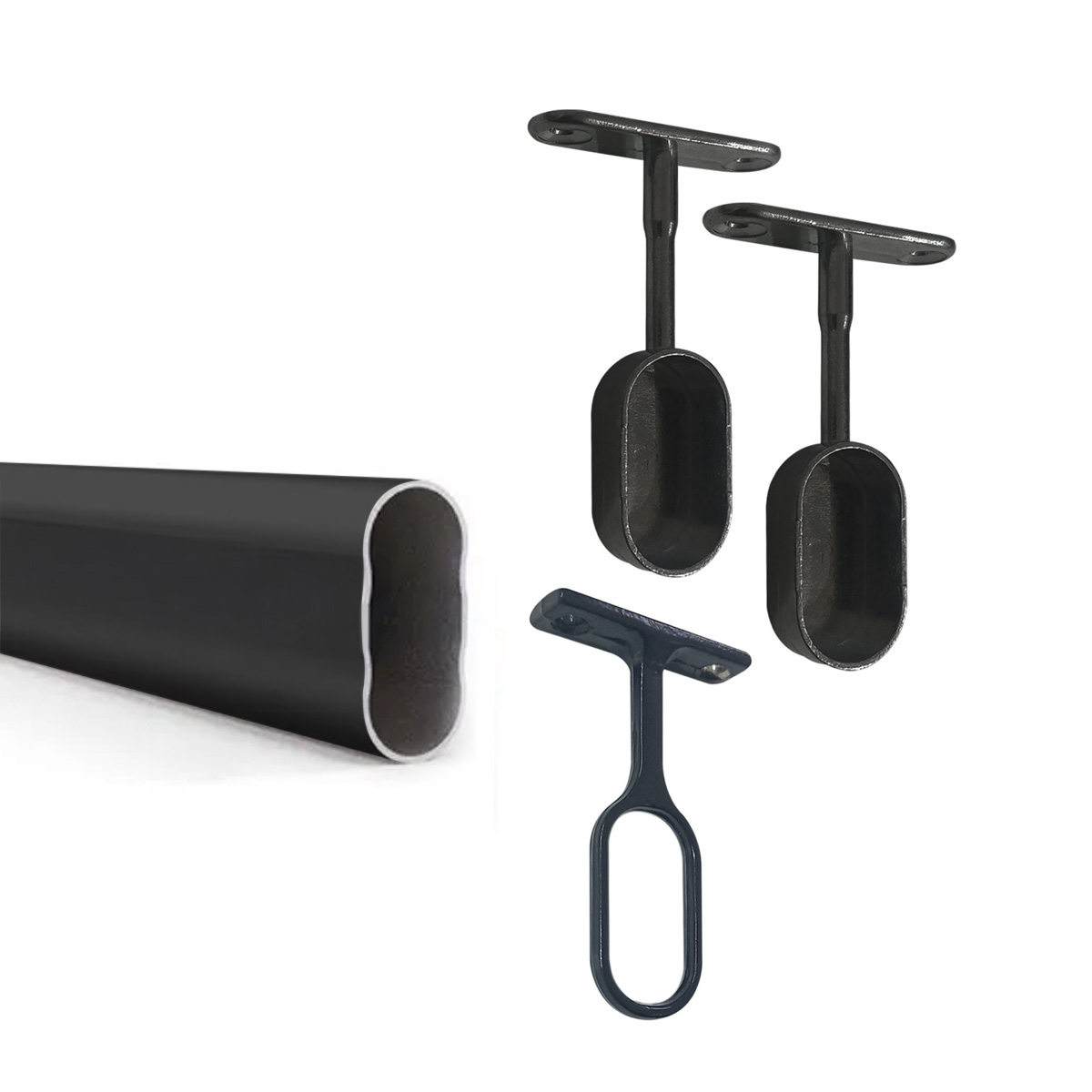 Caño Oval 2mts Negro + 2 Soporte Ciego + Sop Central