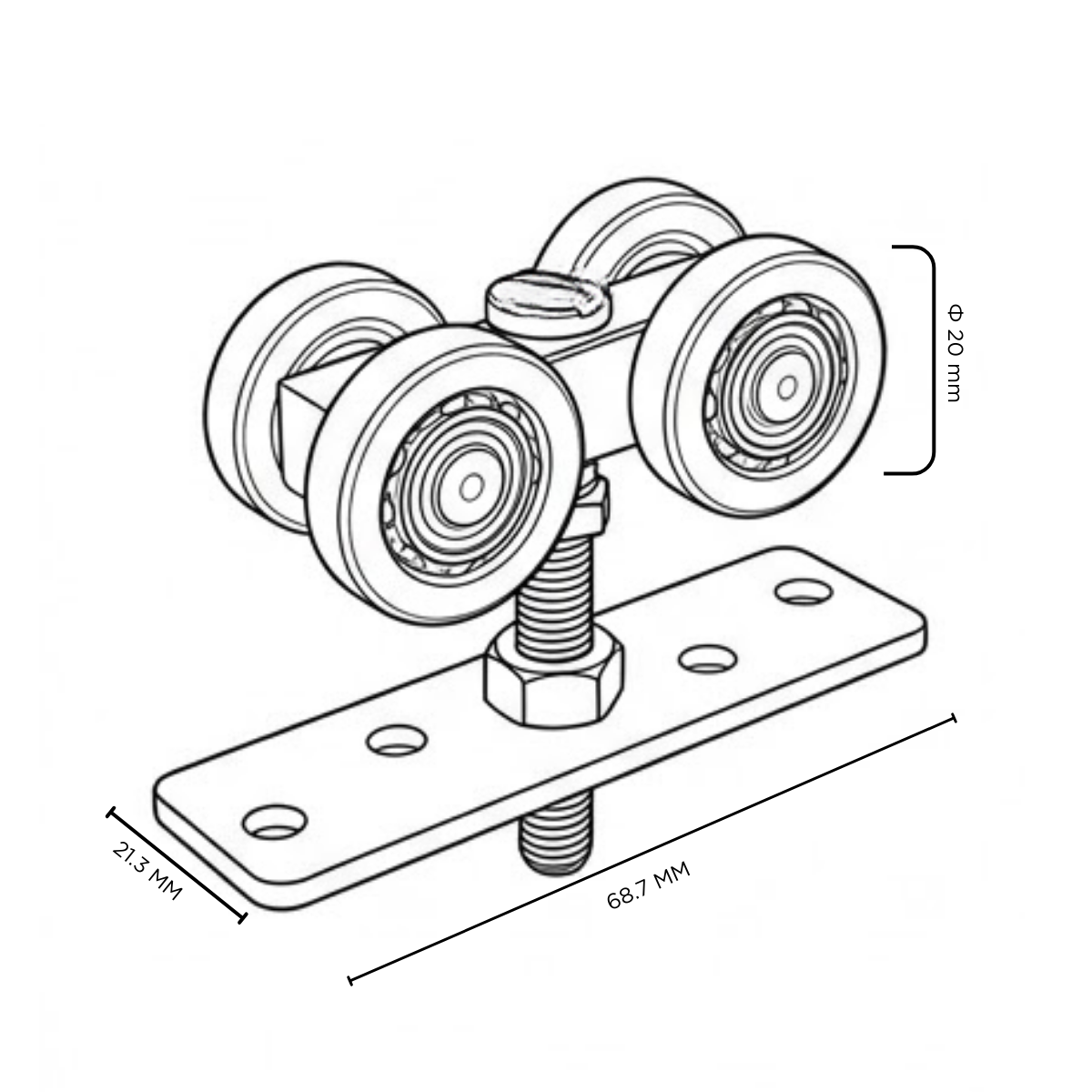 CARRO NYLON BLANCO Y ACERO PARA PUERTAS CORREDIZAS DE COLGAR X 4 UNID