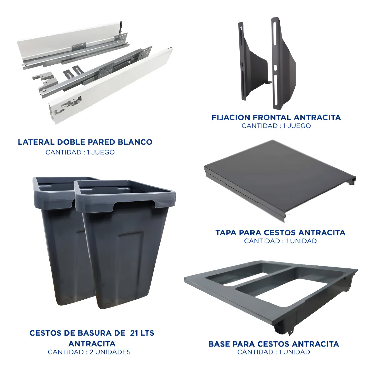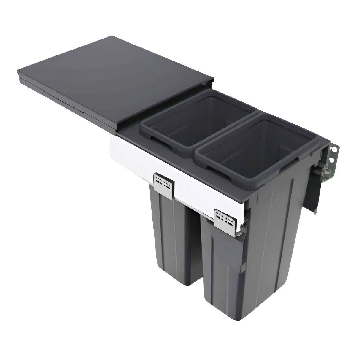 Cesto De Basura Doble Extraíble Cierre Suave Mod 450 Mm 2x27l Antracita Doble Pared Blanco 500 Eh