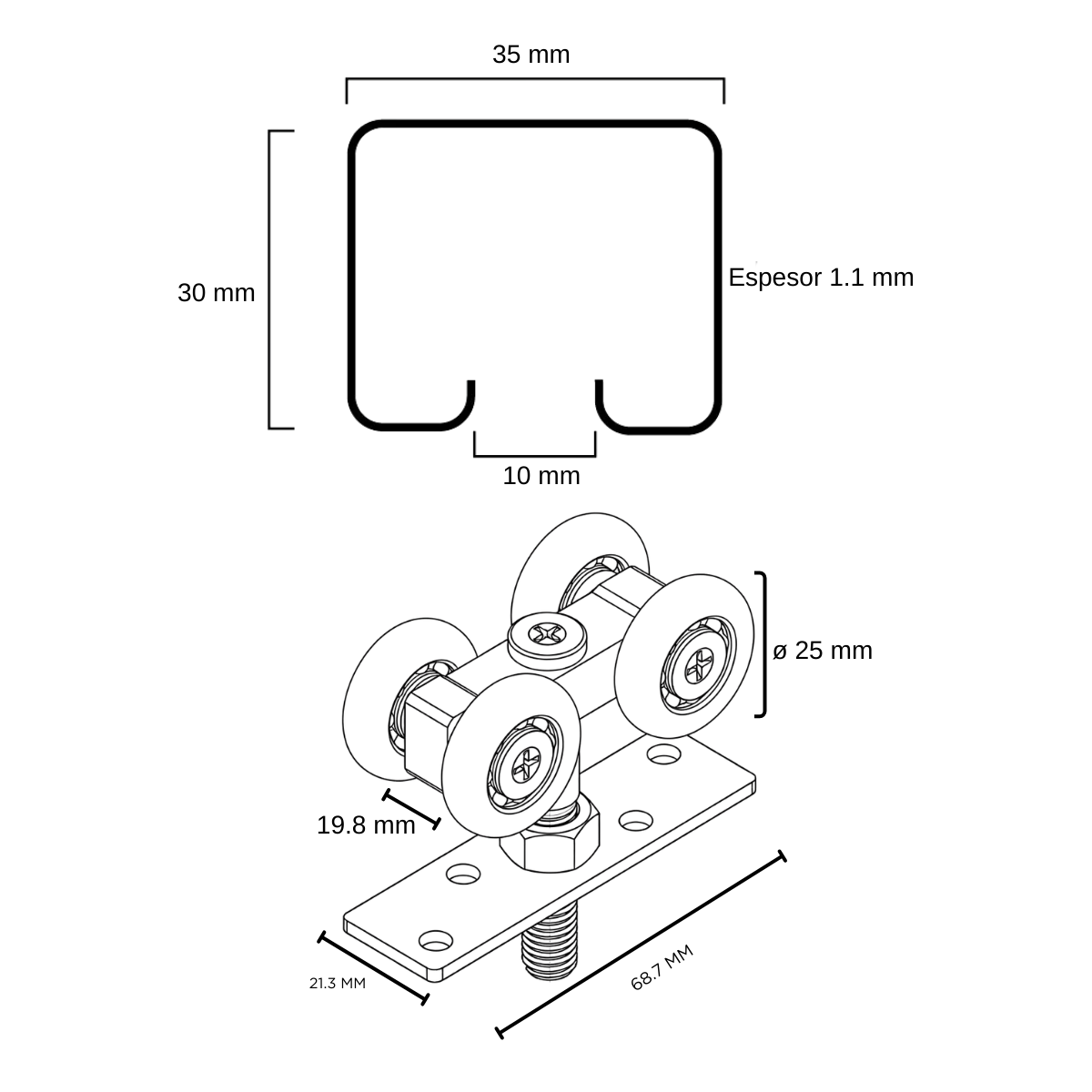 KIT SISTEMA CORREDIZO DE COLGAR PARA 1 PUERTA.