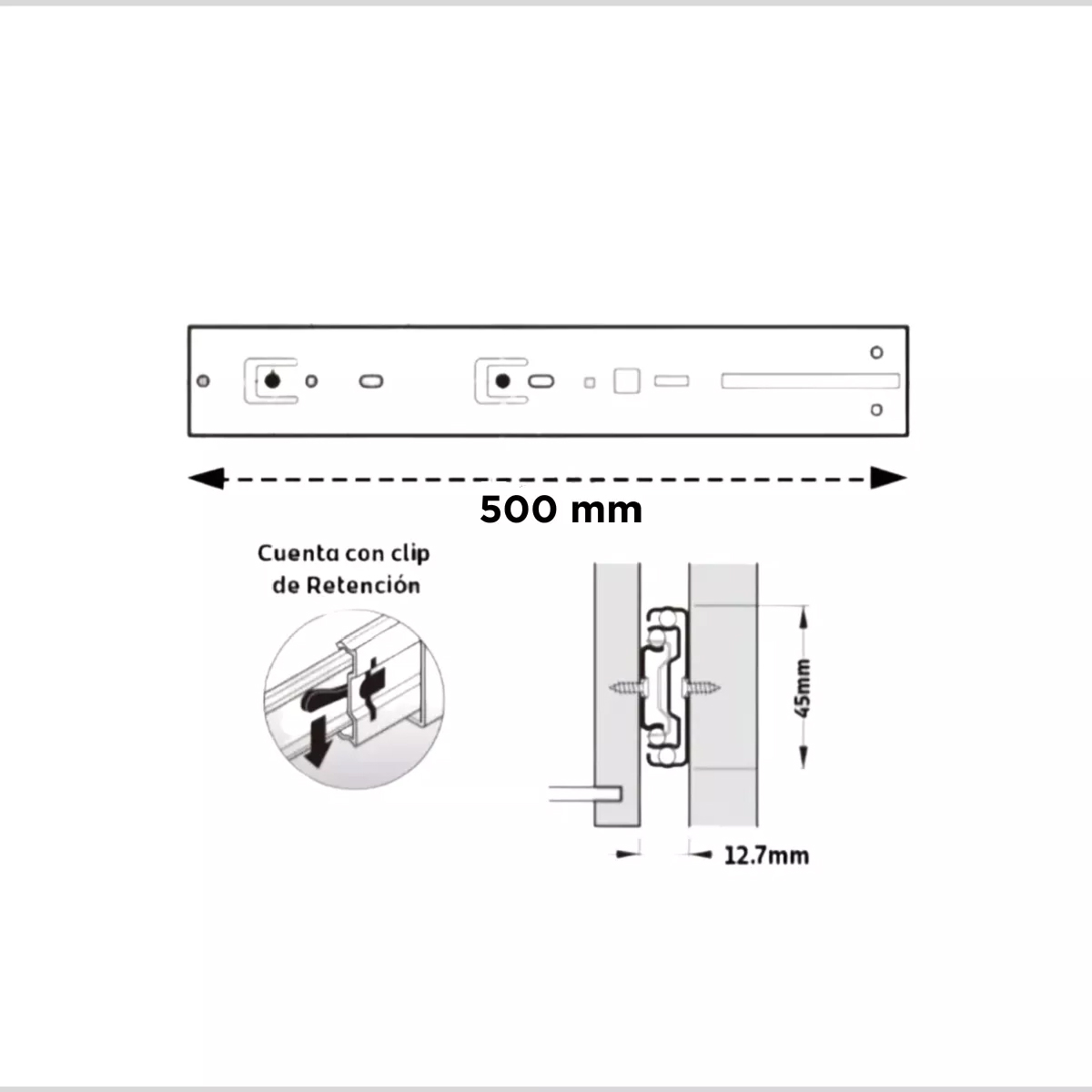 Corredera Telesc 45kg Cierre Suave 500mm Negro