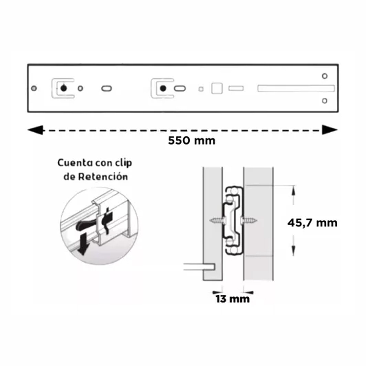 Correderas Telescopicas 55cm Push Open 45kg Galvanizado Hafele