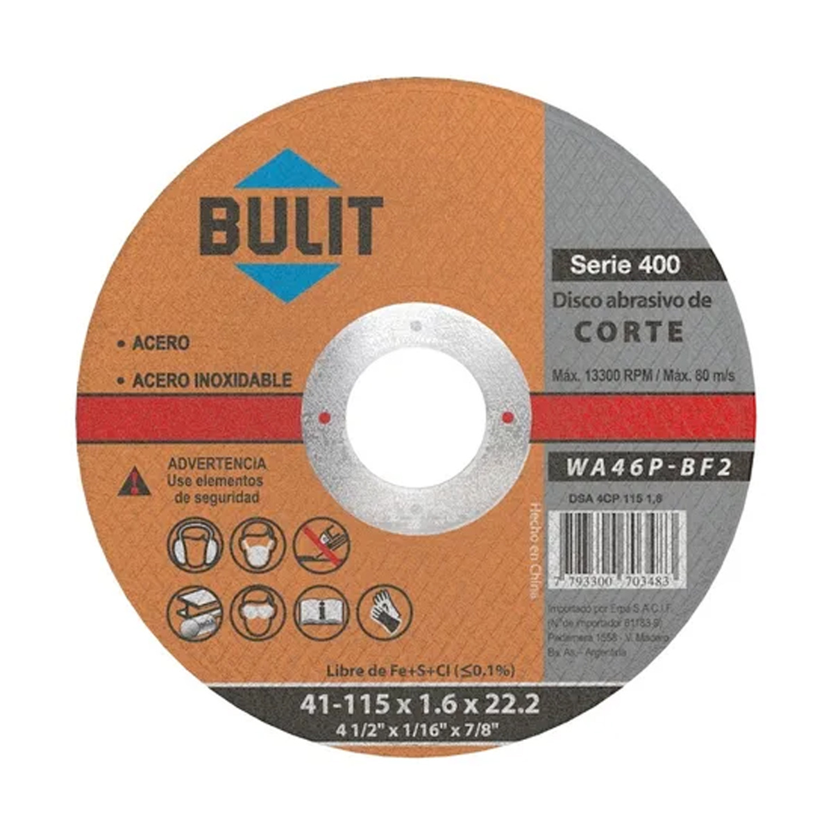 Disco Abrasivo De Corte Serie 400 41-115 X 1.6×22.2