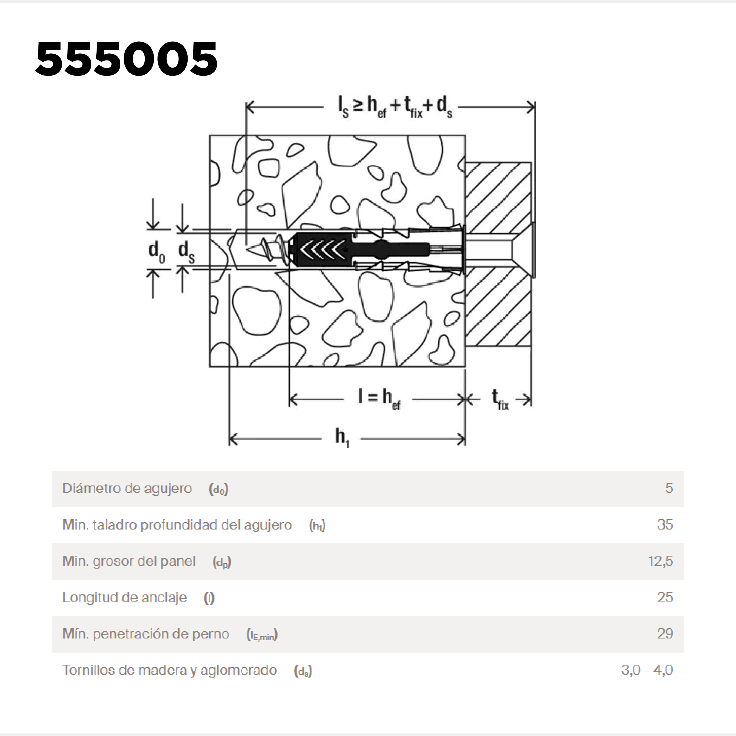 Duopower Taco Ø 5 X 25mm X Unidad