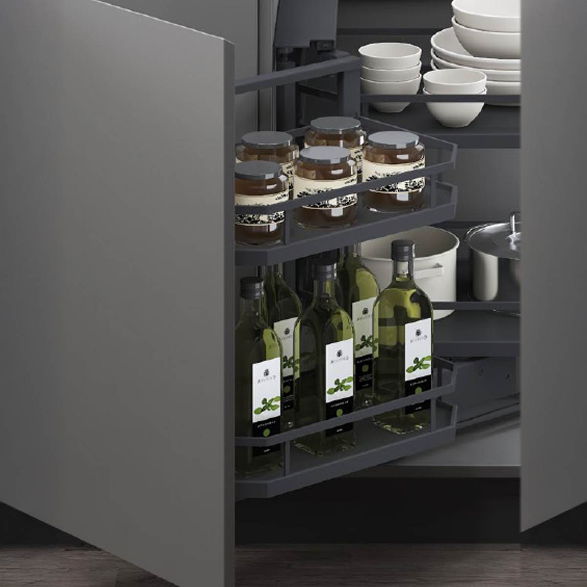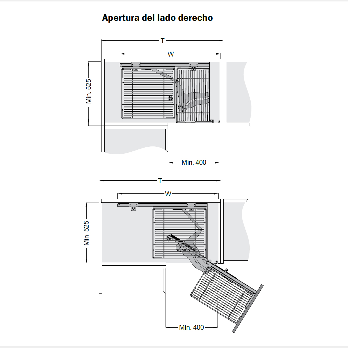 Esquinero Rinconero Extraible Mod 900mm Cierre Suave Antracita Derecho