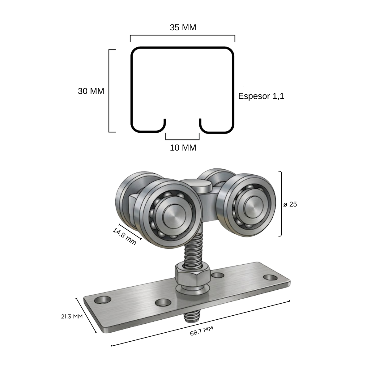 KIT SISTEMA CORREDIZO DE COLGAR PARA 1 PUERTA.