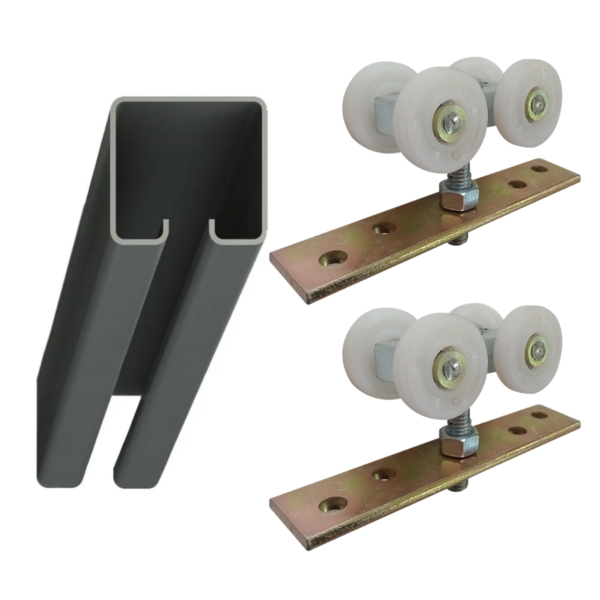 .KIT RIEL 170 + 2 CARROS E16 DE 1.5MTS 1 HOJA.