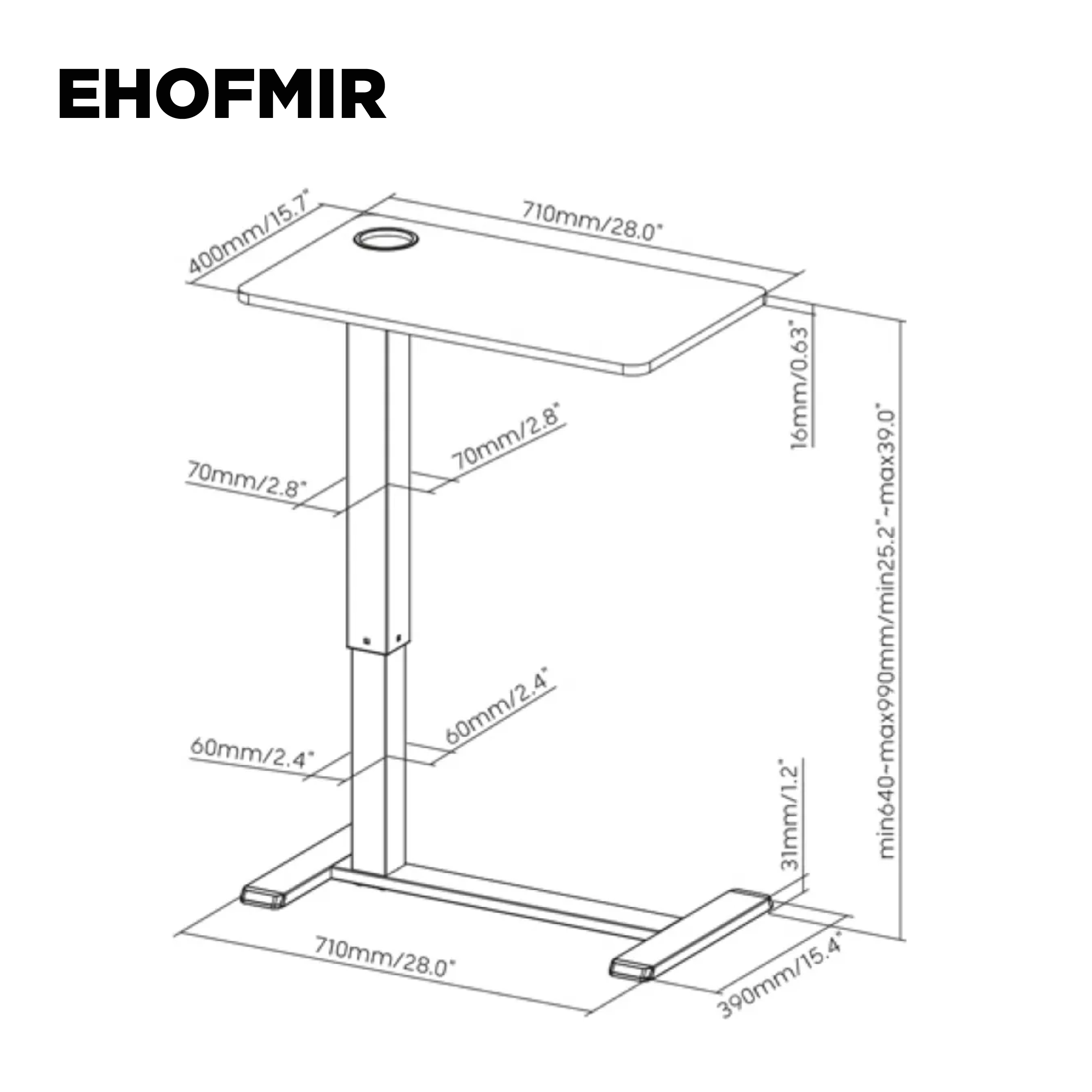 Mesa Auxiliar Neumatica Altura Regulable 640-990mm