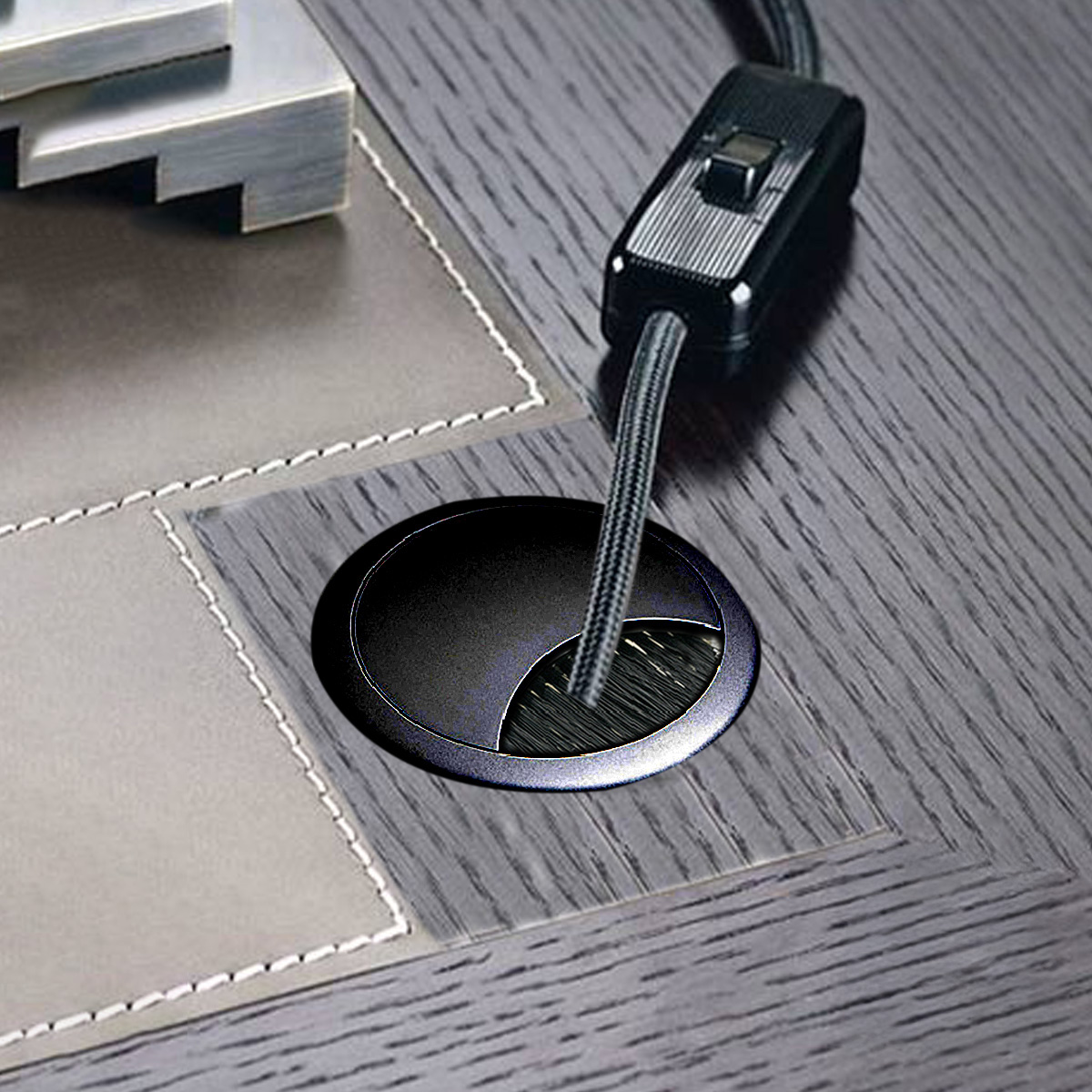 Pasacable Redondo Con Cepillo 60mm Negro Eurohard