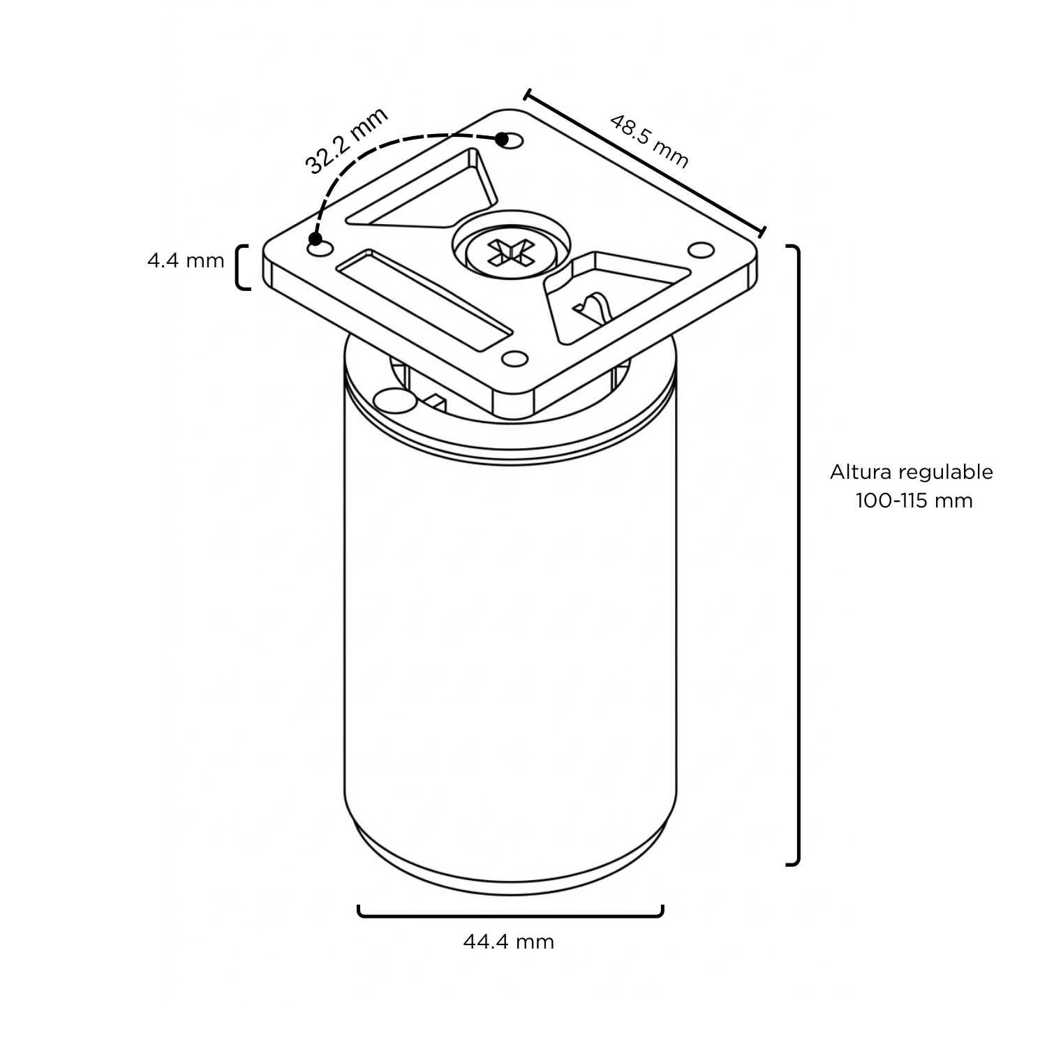 Base cuadrada : 48.5 mm X 48.5 mm