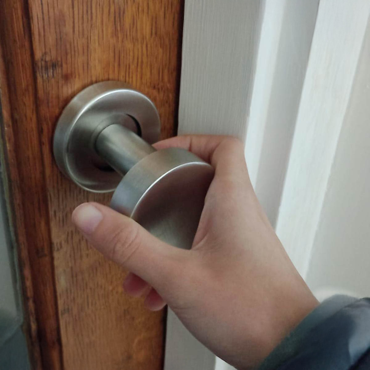 Pomo Doble Balancin Plano Desplazado Acero Inox. Con Roseta 50mm