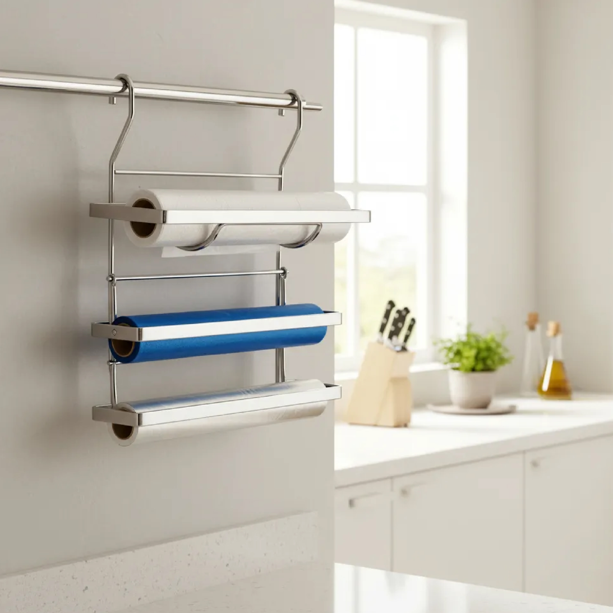 Porta Rollo Triple De Colgar Para Barral Cocina Acero Cromo