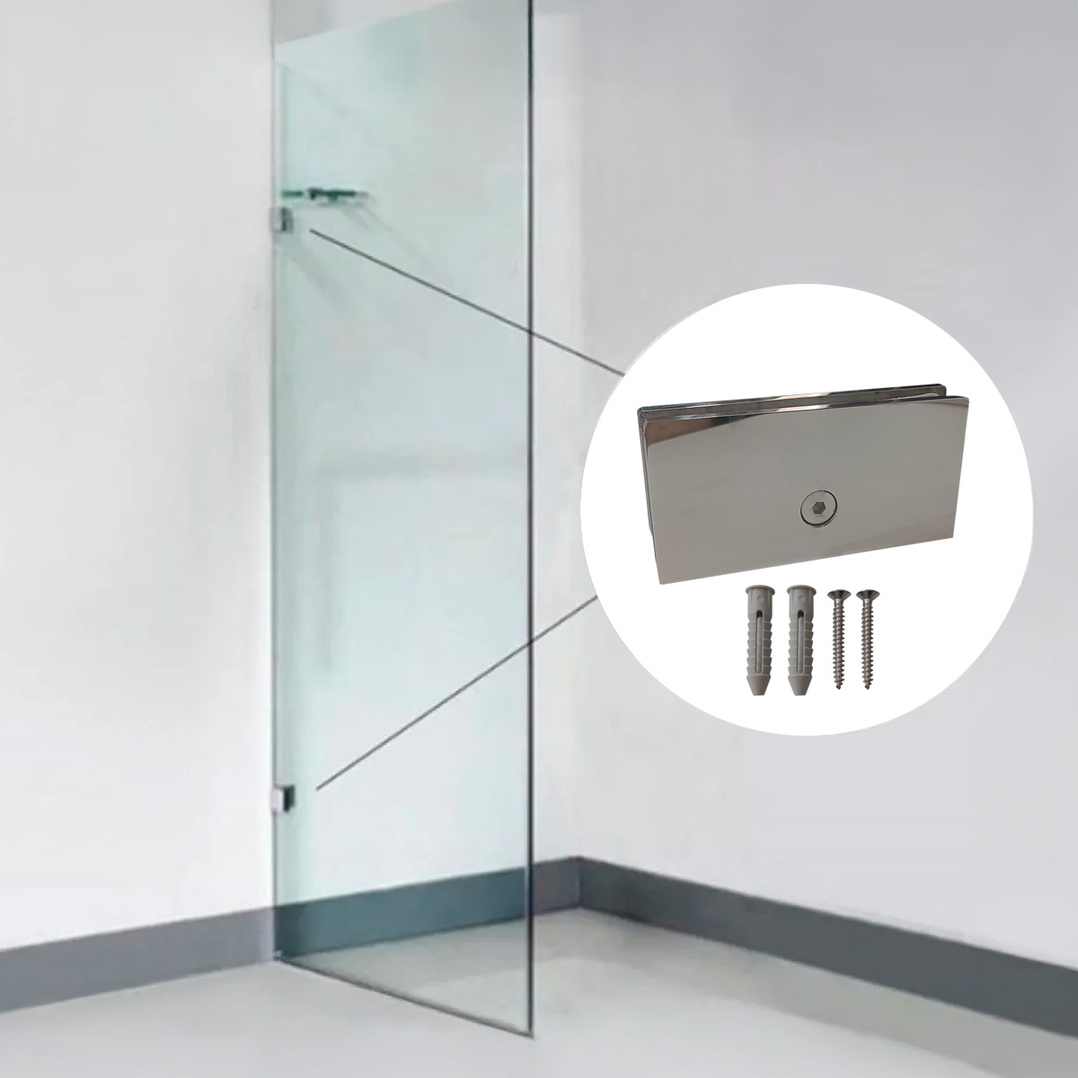 Soporte Fijo 180° Acero Inoxidable (vidrio-pared)