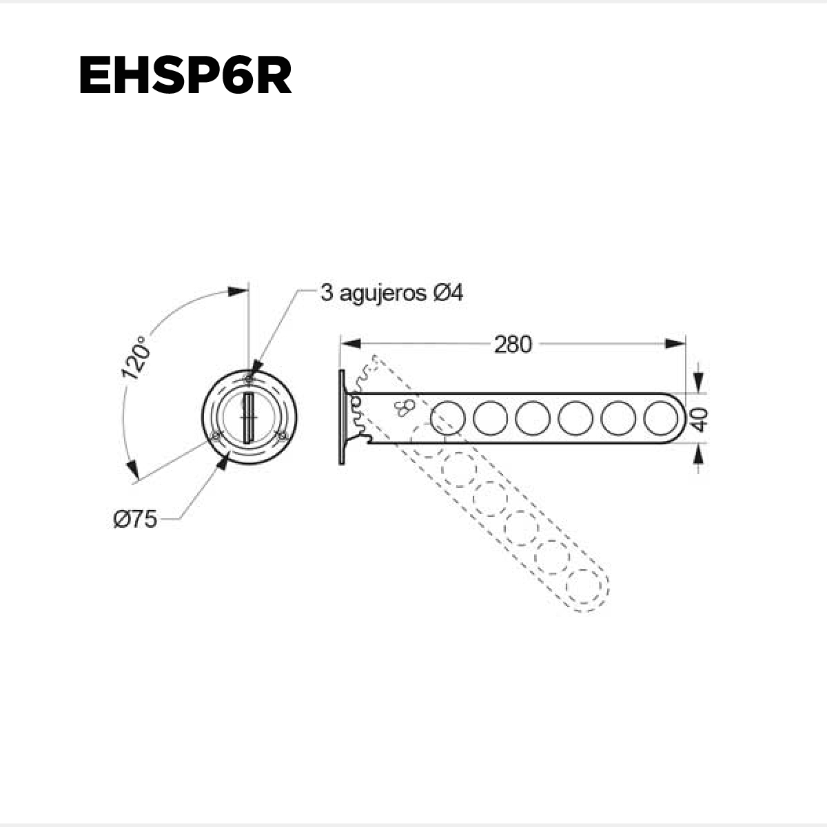 • Con 6 orificios, Ángulo variable en 4 posiciones,