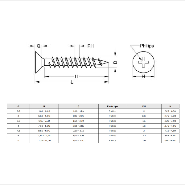 Tornillo P/mad Phillips 3,5×16 Amarillo X 1750 Unid