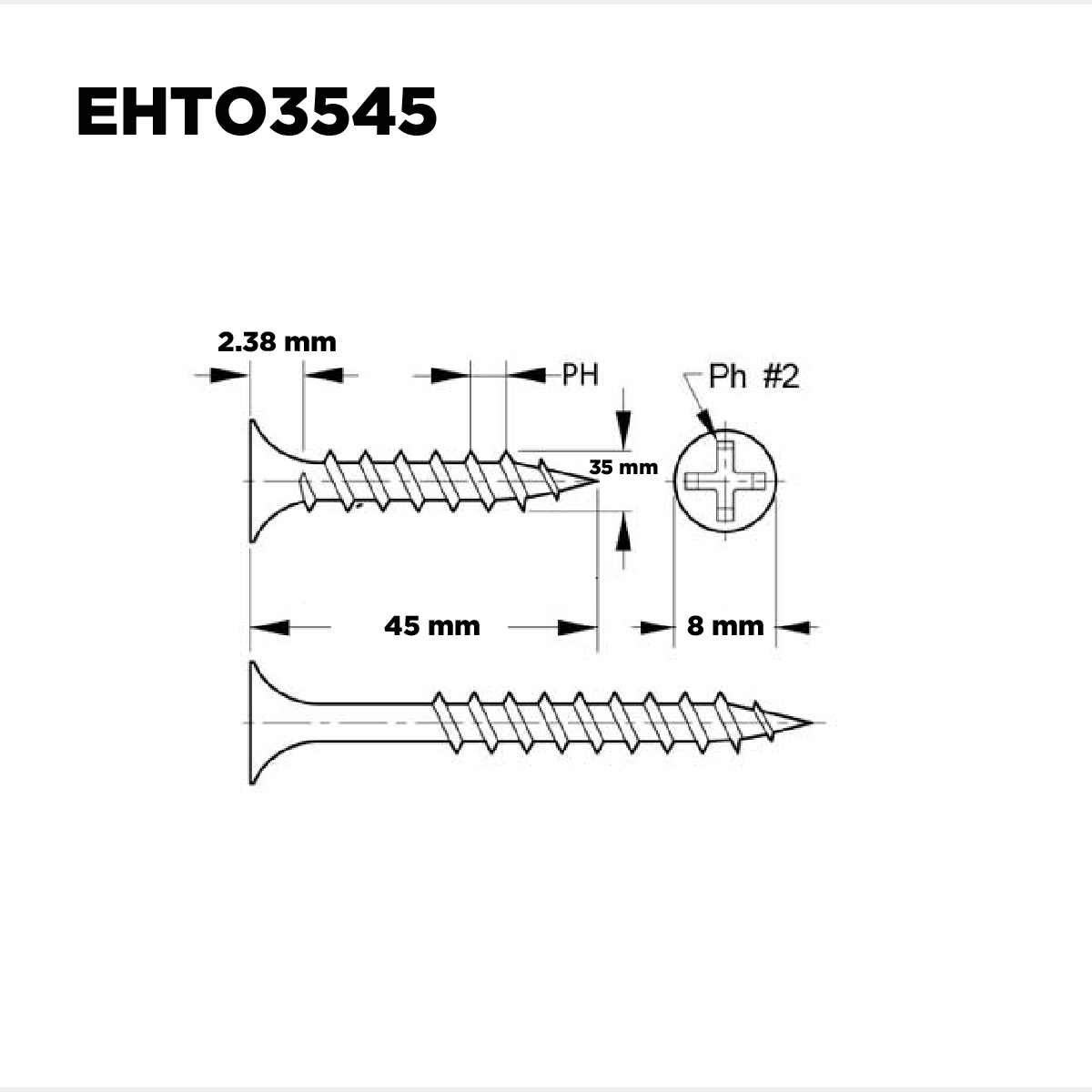 Tornillo Rosca Gr Phillips 3,5×45 Negro X 400 Unid